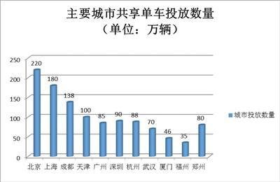 交通運輸部統(tǒng)計數(shù)據(jù)顯示,截至2017年底,全國累計投放共享單車達2500萬輛,大部分集中在一二線城市。其中北京、上海、成都、天津等城市均超過100萬輛,深圳、廣州、杭州、鄭州、南京等城市的共享單車也均達到80萬輛以上。