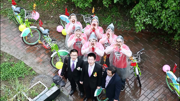 10日,新郎楊愷與新娘張玉倩在湖塘舉行公共自行車婚禮。
