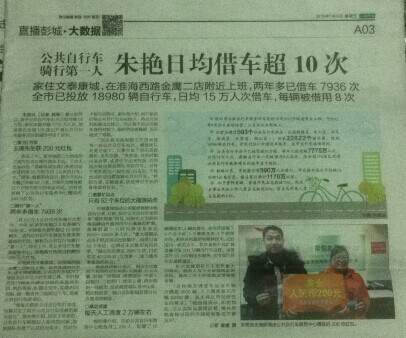 王先生和朱女士昨分別獲得200元獎金。截至上月我市公共自行車共建設(shè)593個站點,投放18980輛車,共計借車7775萬人次,日均15萬人次
