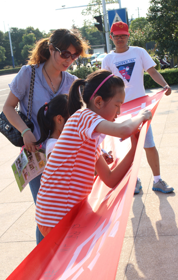 當(dāng)日下午3時(shí),實(shí)踐小隊(duì)騎著由永安公司提供的綠色公共自行車(chē)從河海大學(xué)北門(mén)出發(fā),途經(jīng)紫荊公園、中華恐龍園、新北萬(wàn)達(dá)廣場(chǎng)。期間實(shí)踐小隊(duì),進(jìn)行了發(fā)放宣傳單、百人簽名等活動(dòng),截止晚上8點(diǎn),活動(dòng)圓滿結(jié)束。