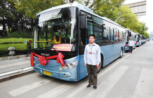 同日,我市舉行純電動公交車投放儀式。截至目前,我市已經(jīng)投放180臺純電動公交車在2路、75路、46路、71路、38路、206路、607路等線路上運行,年底前還將投入165臺,總數(shù)將達(dá)到345臺。本報記者 孫井賢 仲冬竹 攝
