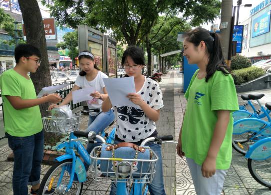 近日,常州信息職業(yè)技術學院學生自發(fā)組織的志愿者團隊在常州武進區(qū)街頭開展了暑期公共自行車使用情況的社會調(diào)查活動。