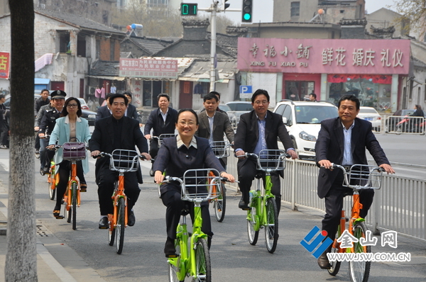 鎮(zhèn)江“公車(chē)”試行首日市長(zhǎng)朱曉明騎車(chē)體驗(yàn)