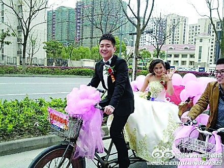 ssweetheart”因為一張婚禮圖片,在微博上引起“圍觀”,原因不僅是新郎新娘的婚車用上了三輪車,而且連送親的隊伍每人都騎上了公共自行車。這場綠色、低碳、環(huán)保的婚禮被很多網友和市民津津樂道,公共自行車的這一“新用途”也成為焦點。